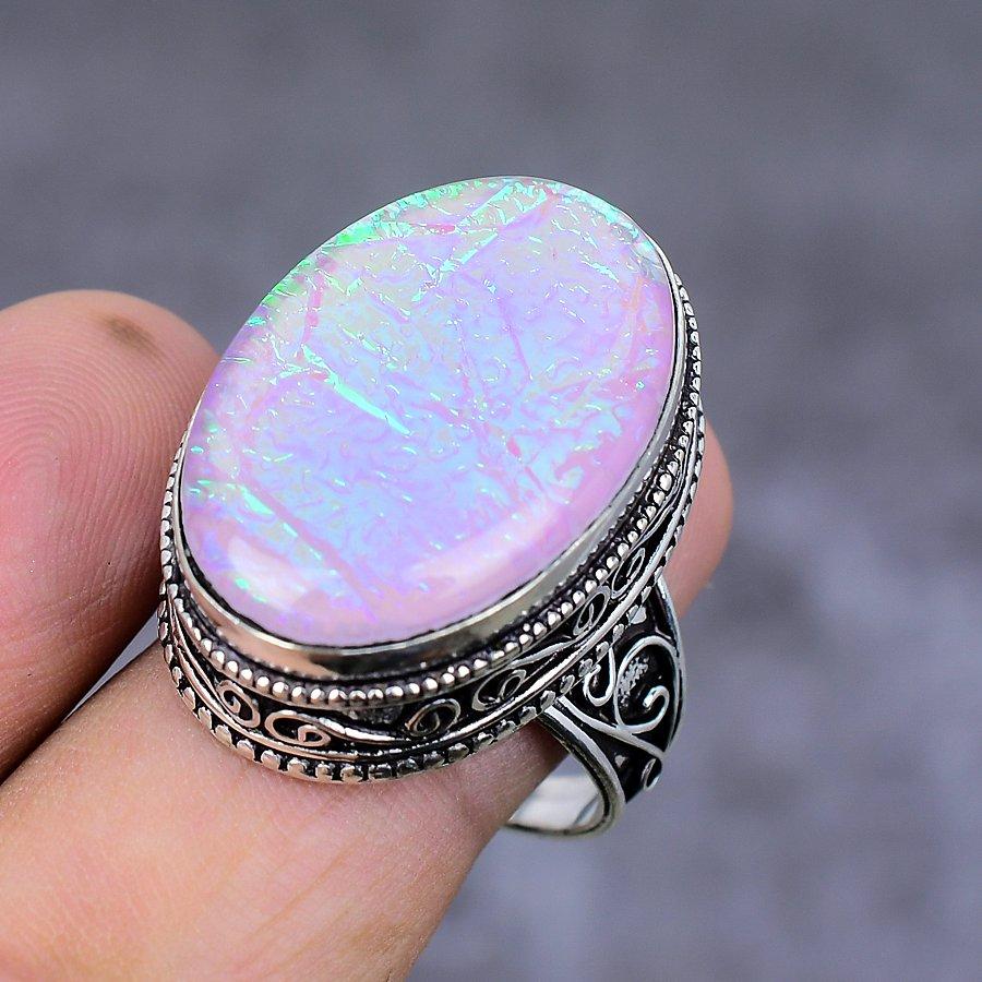 Кольцо из натурального розового триплетного опала из стерлингового серебра 925 пробы, размер 10,5 D8G87