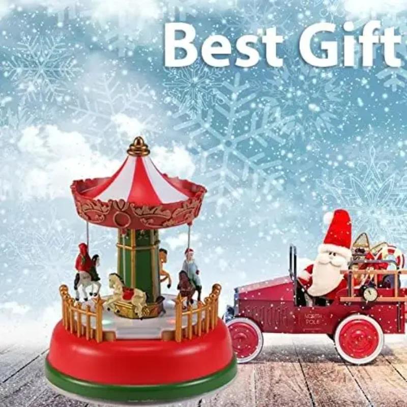 Рождественская деревня Карнавальная сцена Светодиодные огни Музыкальная шкатулка Карусель Колесо обозрения Рождество Подарки в канун Рождества Праздничные украшения