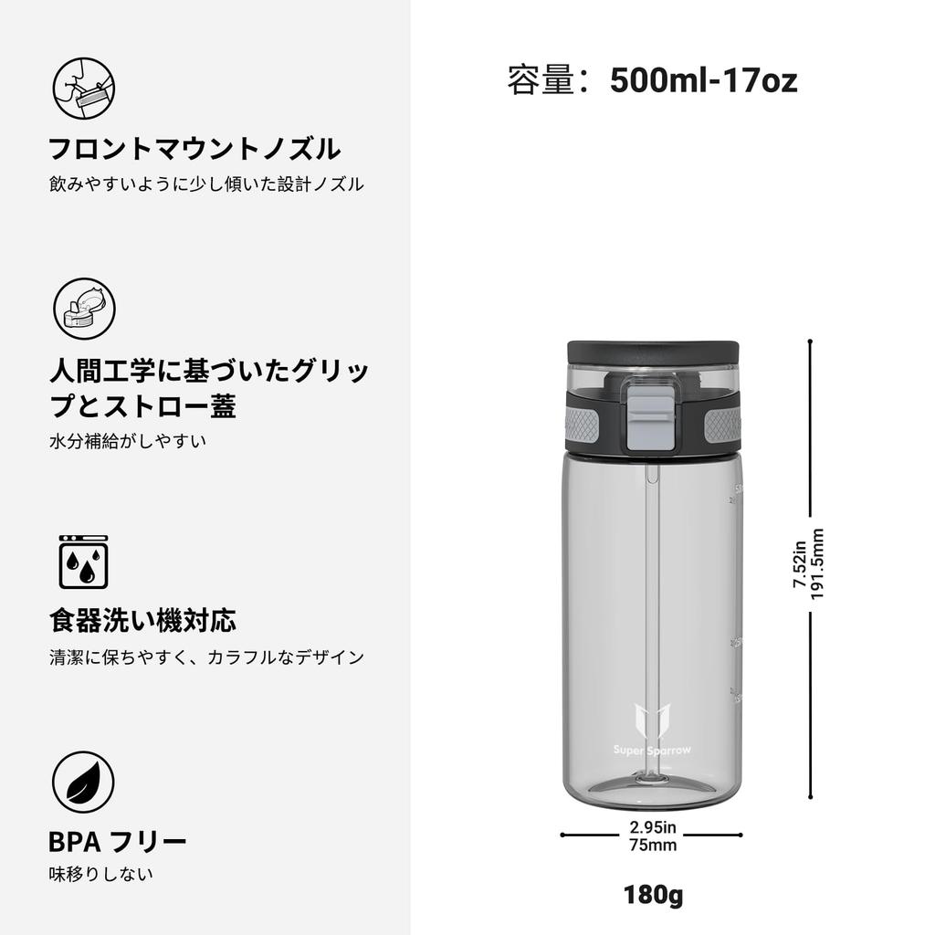 Бутылка для воды Super Sparrow 500 мл, США, бутылка с трубочкой Tritan BPA Free, подходит для тренировок - - - Спорт, Школа, Бейсбол, На открытом воздухе, Кемпинг,