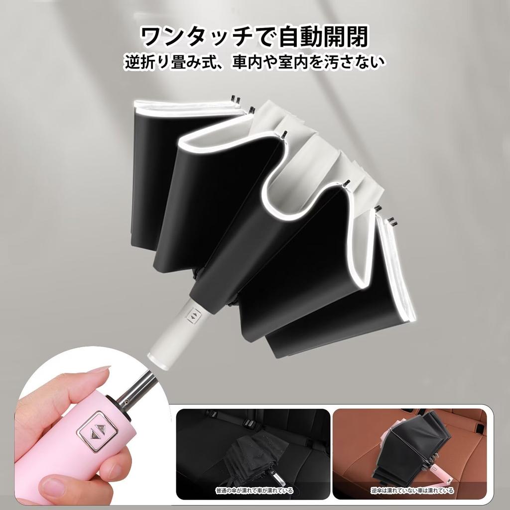 [Складывается обратно и открывается/закрывается одной рукой] Этот складной зонт в три раза можно автоматически открывать и закрывать одним нажатием кнопки, что делает его очень удобным.. Когда вы закрываете его после использования, мокрая часть складывается внутрь, поэтому капли воды не будут разбрызгиваться, как у обычного складного зонта, и вам не придется беспокоиться о том, что вы намочите себя или окружающих.