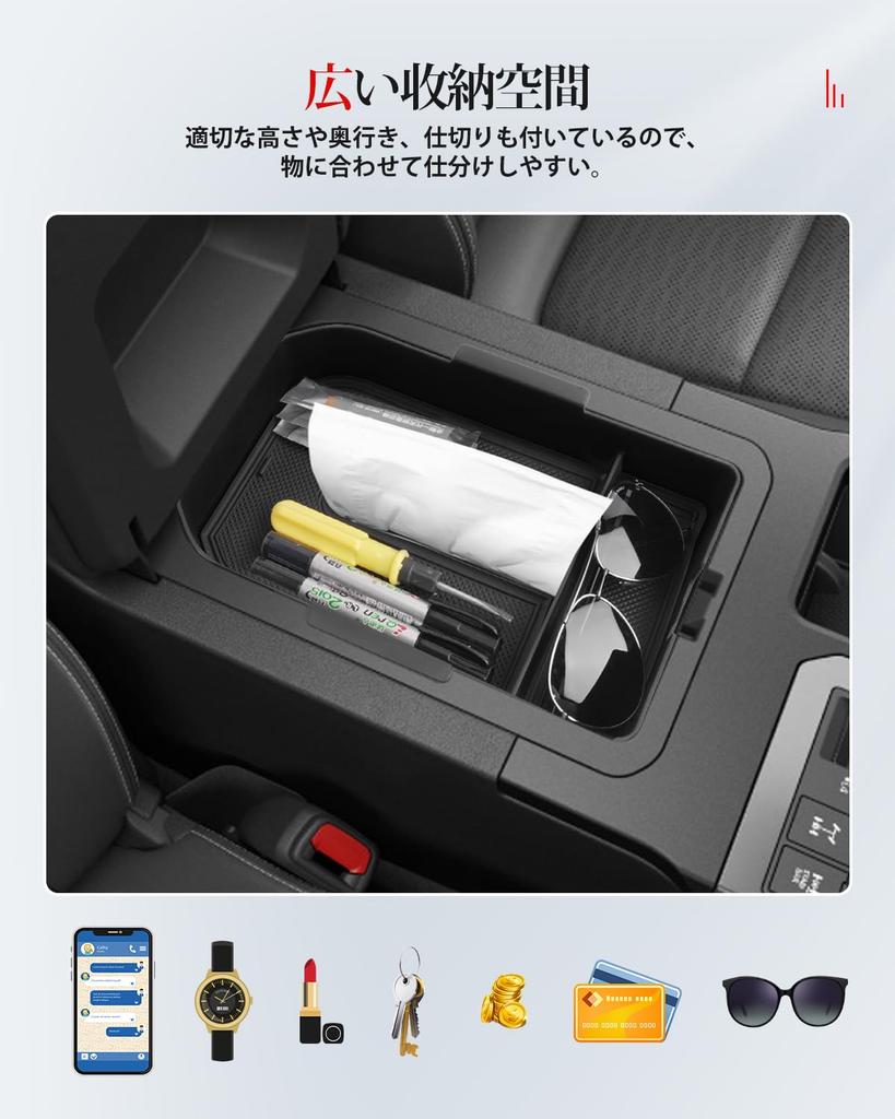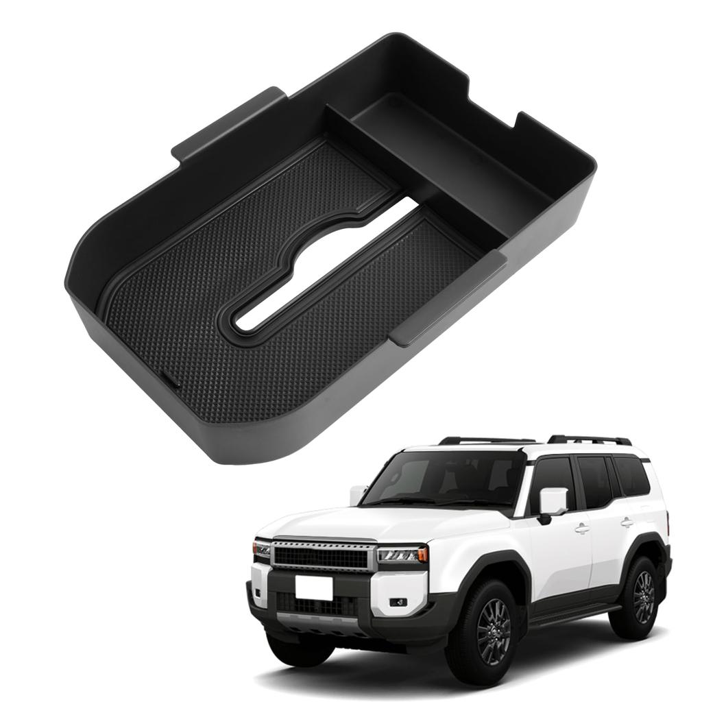 [Поставляется с резиновым ковриком/легко чистить]: Центральный консольный ящик Land Cruiser 250 оснащен нескользящим ковриком, который снижает шум и вибрацию во время движения, а также предотвращает скольжение мелких предметов при их хранении.. Кроме того, его легко содержать в чистоте, если он загрязнится.
