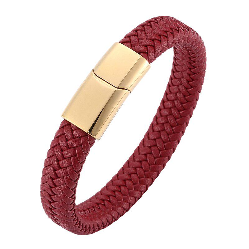 Модный плетеный мужской браслет красный кожаный браслет застежка из нержавеющей стали женские ювелирные изделия подарок BB0236