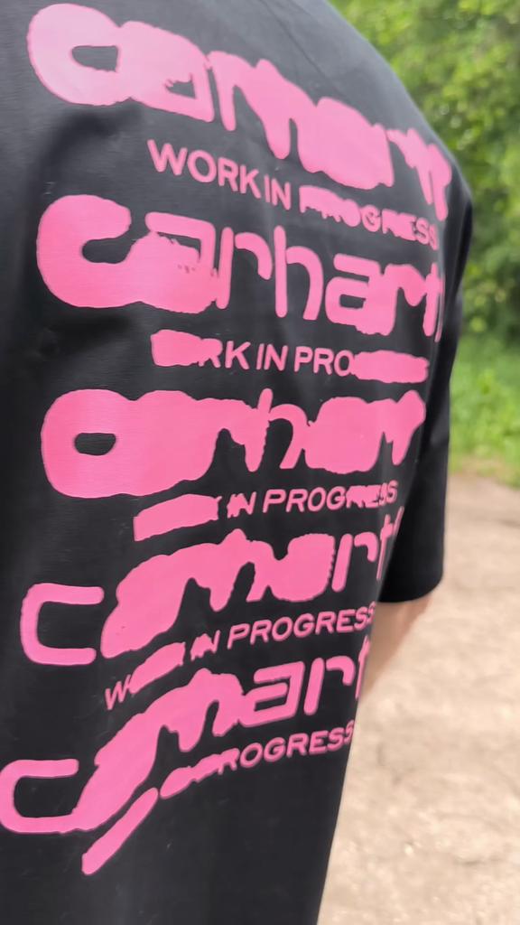 Футболка Carhartt ❤️ Carhartt Work in Progress (WIP) - это больше, чем просто одежда: это символ глобальной уличной культуры. Выросшая из рабочего наследия американского бренда Carhartt, WIP заняла особое место в мире моды, став узнаваемой среди скейтеров, художников, диджеев и тех, кто ценит утилитарную эстетику с городским акцентом. Благодаря коллаборациям с культовыми брендами и участию в субкультурах от Берлина до Токио, Carhartt WIP превратилась в визуальный код для тех, кто говорит на языке андеграунда, но хочет быть понятым в любой точке мира. Футболка выполнена из хлопка, что обеспечивает хорошую воздухопроницаемость и приятные тактильные ощущения. Хлопок идеальный материал для повседневной носки, особенно в теплую погоду. Футболка в черном цвете, который является универсальным и легко сочетается с другими элементами гардероба. На груди небольшой, но заметный принт с надписью "Carhartt" и "Work in Progress" в розовых и белых тонах. Этот принт выполнен в стиле "Ink Bleed" (размытие чернил), что придает ему современный и слегка гранжевый вид. На спине крупный и повторяющийся принт с той же надписью "Carhartt Work in Progress" в розовом цвете. Футболка имеет классический крой, который подходит для большинства типов фигур. Узнаваемый логотип Carhartt WIP, выполненный в уникальном стиле, делает эту футболку отличным выбором для поклонников уличной моды и бренда. С удовольствием рекомендую 👍 Удачных покупок ❤️ Ваша Вика 😊