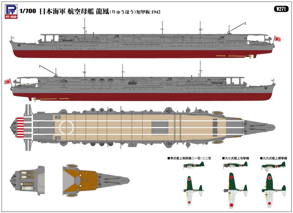 Pit Road Skywave Series японский военно-морской авианосец Ryuho Short Deck 1942 Пластиковая модель W271 1/700 (Корабль)