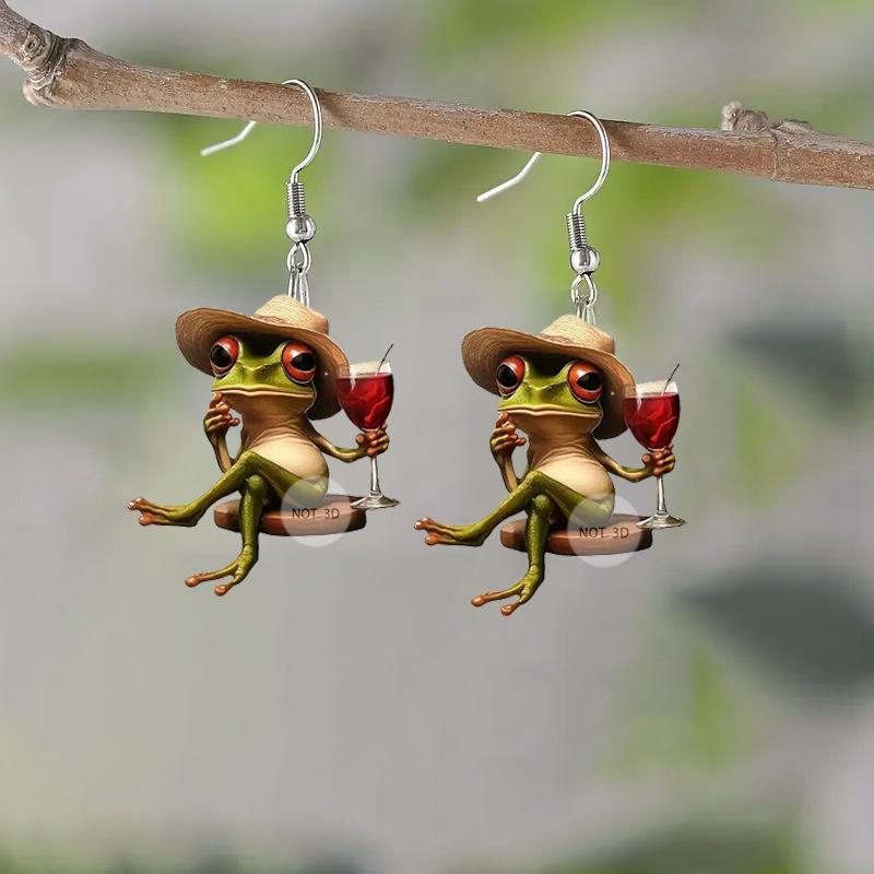 Уникальные серьги в виде лягушки и бокала вина — купить товар онлайн с бесплатной доставкой по всему миру!
