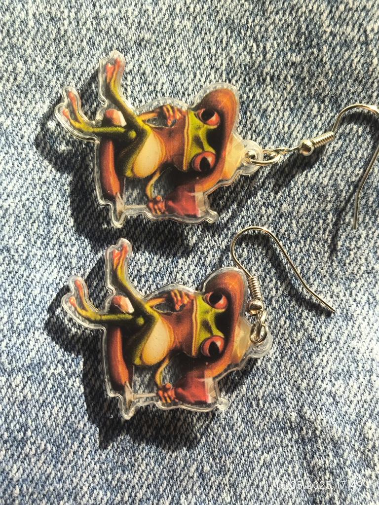 Уникальные серьги в виде лягушки и бокала вина