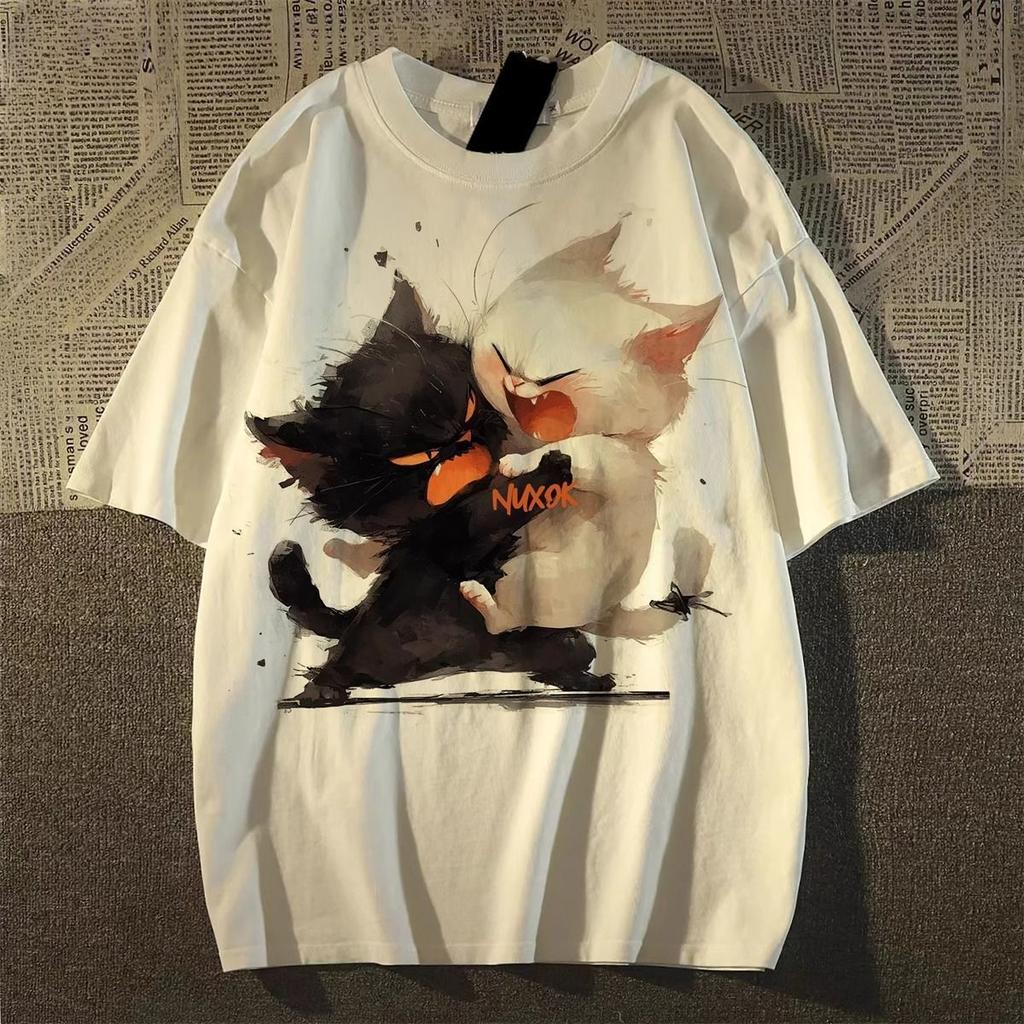Футболка Harajuku Oversize, высокое качество, 200 г, 100% хлопок, футболка, летняя, 2025 г., забавная футболка с принтом мультяшного кота для женщин, одежда, топы Y2k, уличная одежда — купить товар онлайн с бесплатной доставкой по всему миру!