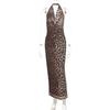 Женская одежда 2025 осень и зима новая мода сексуальное платье без рукавов с открытой спиной и леопардовым принтом