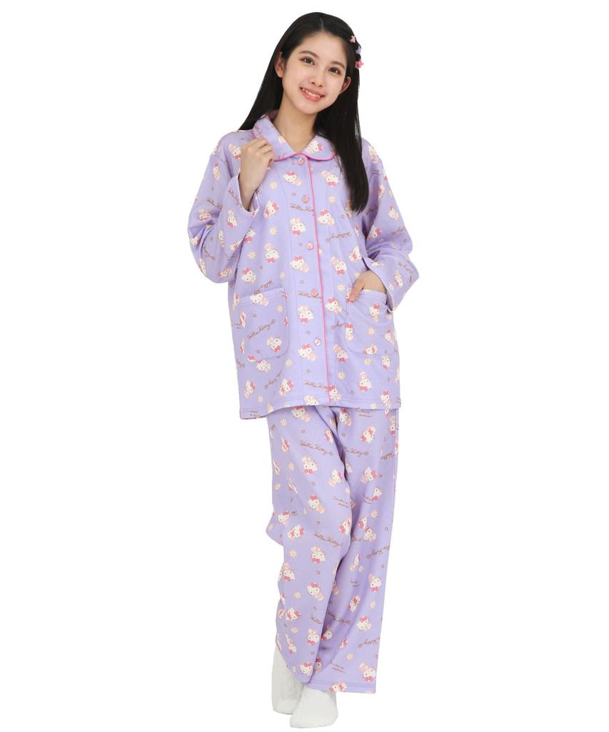 Hello Kitty рубашка пижама трикотажное одеяло длинный рукав длинные брюки верх и низ комплект комнатная одежда домашняя одежда [SAZAC] женская (Фиолетовый/М/SAN1854)