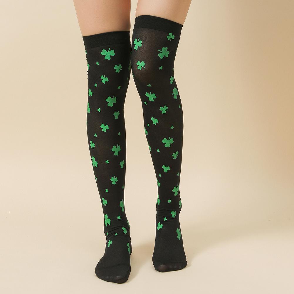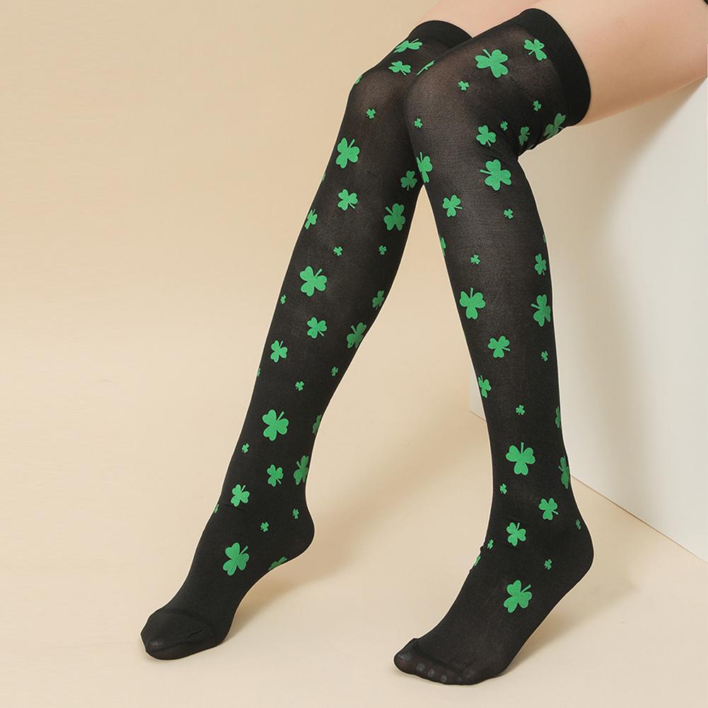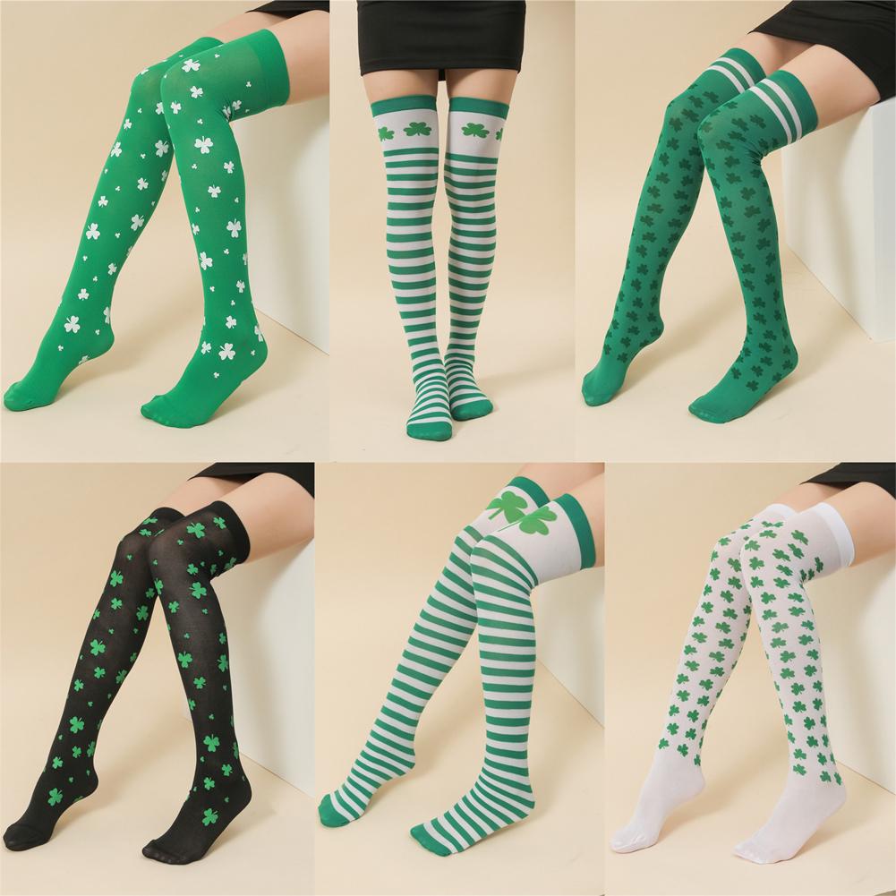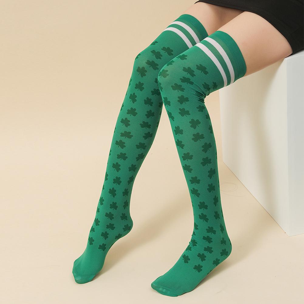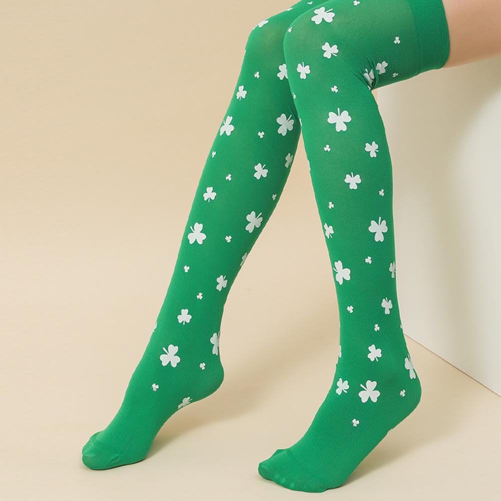 Женские шелковые чулки ко Дню Святого Патрика, зеленые чулки, высокие носки для вечеринок, носки-капли для студенческого молодежного мероприятия