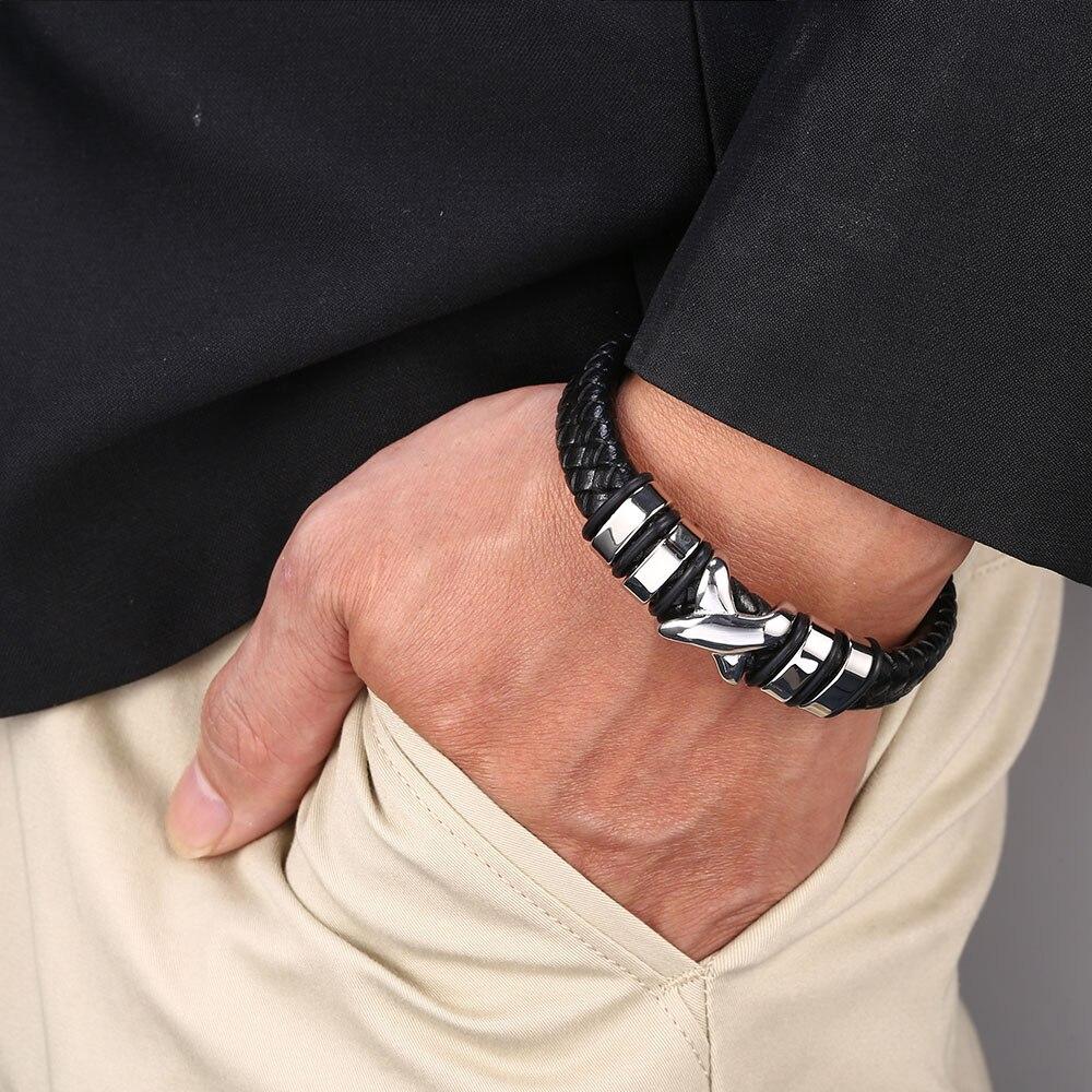 Мужской кожаный браслет, черный кожаный браслет, пряжка, стильный дизайн, браслет, мужской подарок