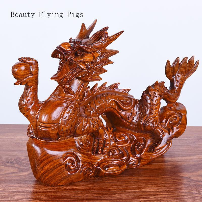 Китайская высококачественная резьба по дереву, украшения в виде драконов со знаком зодиака, гостиная, офис, изделия из красного дерева, статуэтка животного по фен-шуй
