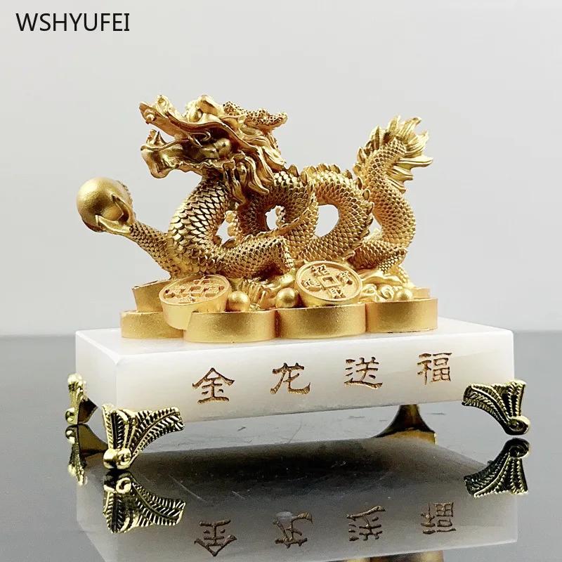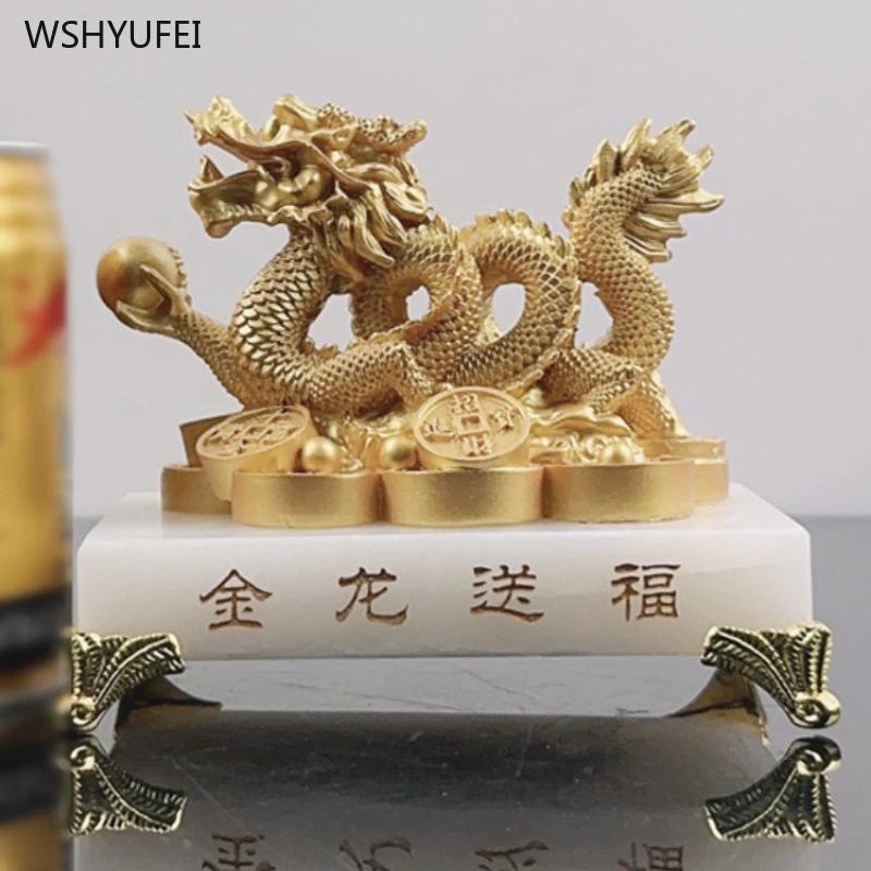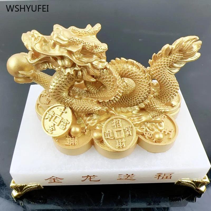Золотой дракон Подарок Украшения в форме дракона Скульптура Поделки Гостиная Декор для дома Подарок на новоселье Аксессуары в стиле фен-шуй