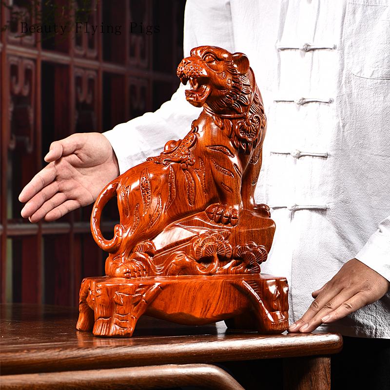 Китайская креативная резьба по розовому дереву, украшения в виде тигров, поделки для дома и офиса, аксессуары для украшения дома с животными