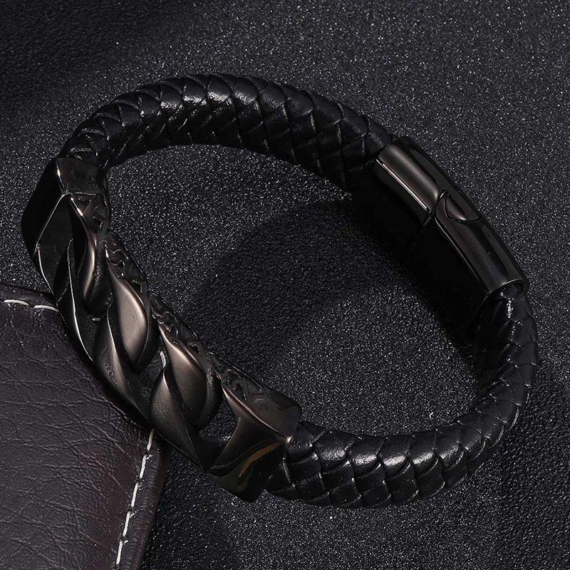 Модные мужские украшения из натуральной кожи, черный браслет с подвесками и стальной пряжкой, мужские украшения, подарок на день рождения
