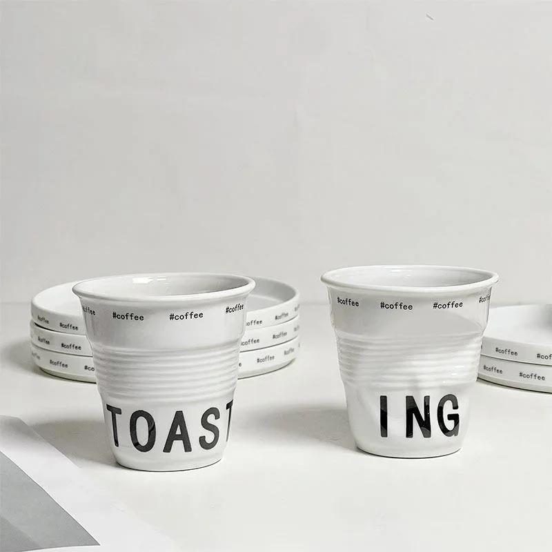 Белые керамические морщинистые кружки, французская нестандартная кофейная чашка, дизайн Sense Premium, бытовые чашки для завтрака, молочные кружки для пар, подарки