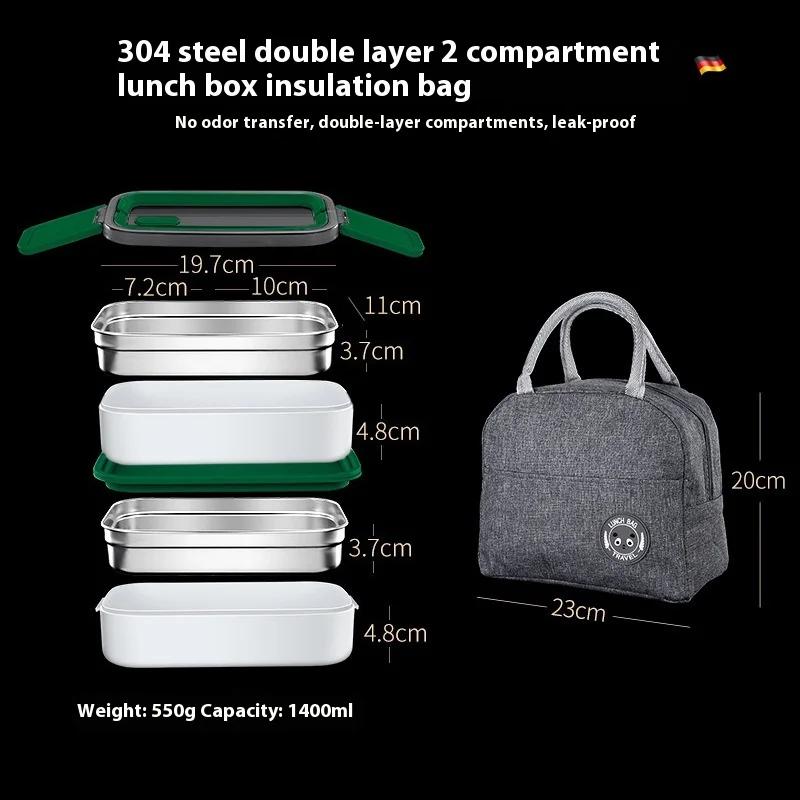 Двухслойный изотермический ланч-бокс из нержавеющей стали с отделением для термосумки, портативный ланч-бокс бенто, контейнеры для хранения еды