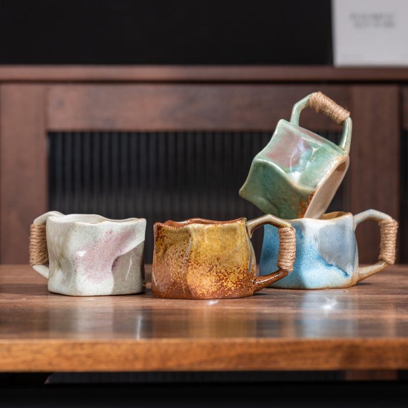 240 мл ретро керамическая кружка в японском стиле нестандартной формы чайная чашка с ручкой креативные керамические кружки для воды офисные кружки для пары подарки