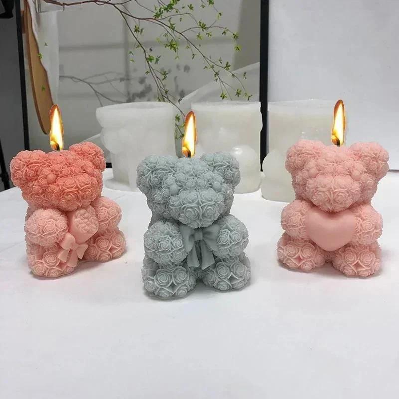 Love Bear Handmade Creative Свеча Силиконовая форма Сердце Милый медведь Торт Силиконовая форма Роза Медведь Сердце Магический куб смоляная форма