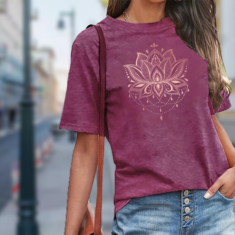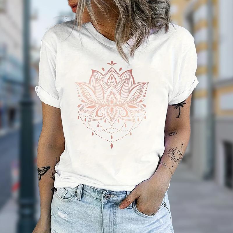 Женская летняя футболка с принтом «Цветок лотоса», футболки с коротким рукавом, повседневные топы с принтом