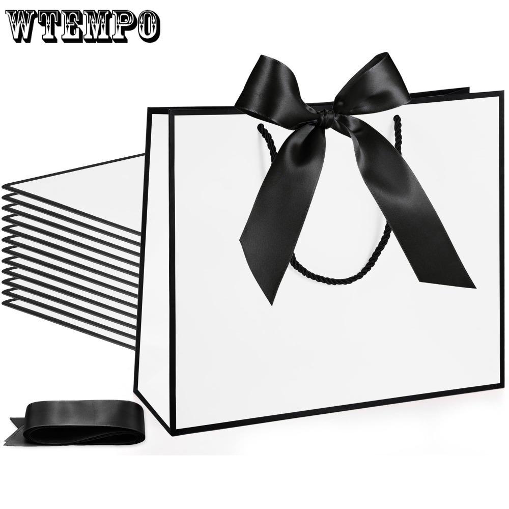 10 шт. подарочных пакетов с бантом из ленты и ручками из бечевки, бумажные пакеты с черной лентой, хозяйственные сумки на день рождения, свадьбу, рождество, новоселье, годовщину