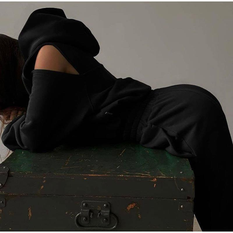 2025 весна новый женский комплект одежды однотонный короткий свитер с капюшоном корсет брюки комплект из двух предметов для женщин