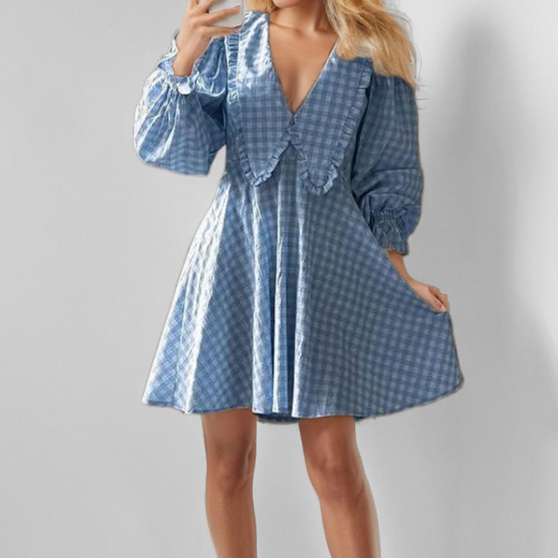 2025 осень и зима новая женская одежда темперамент пригородный кукольный воротник клетчатое платье с длинными рукавами — купить товар онлайн с бесплатной доставкой до всему миру!