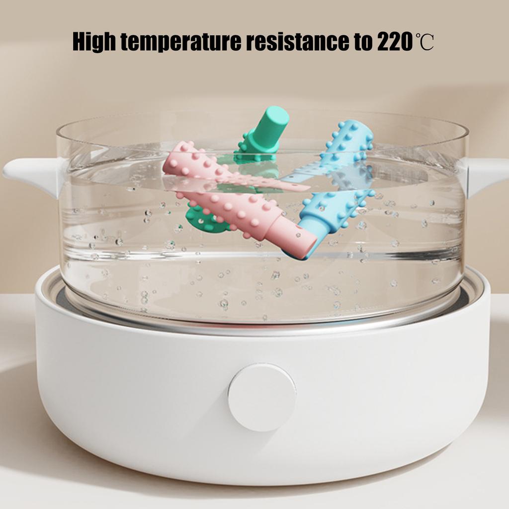 Изготовлены из нетоксичного, безвкусного пищевого силикона, мягкие, но прочные, с уникальной текстурированной поверхностью для эффективного массажа десен.