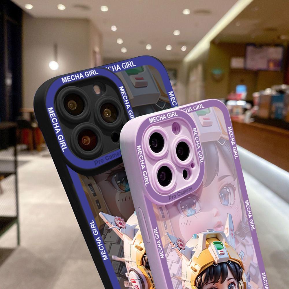Для iPhone 16 15 14 Pro Max Redmi Note 13 12 Pro Samsung S25 S24 Ultra A13 A14 A15 A16 милый дизайн Mecha Girl мягкий защитный чехол для камеры с полным объективом