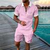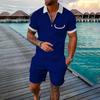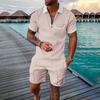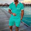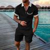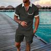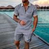 Мужской летний однотонный комплект из рубашки с коротким рукавом, карманом на молнии и лацканами, шортами
