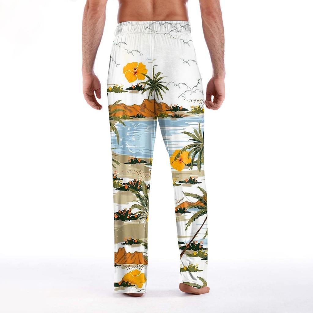 Мужские мягкие домашние пижамные штаны с гавайским принтом, повседневные спортивные штаны с завязками