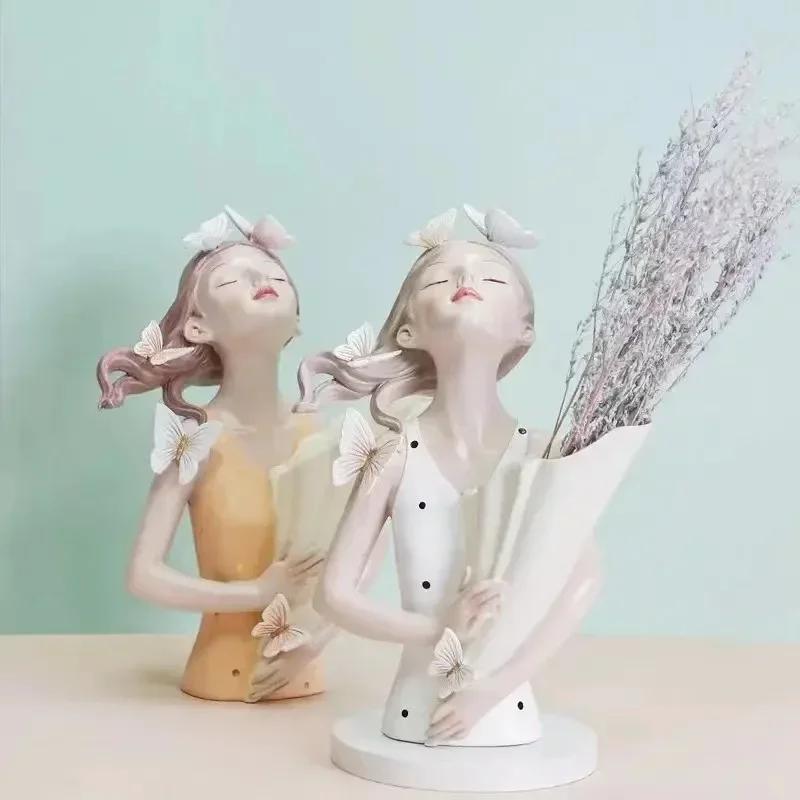 Современные декоративные искусственные вазы для цветов, бабочки, девушки, скульптуры, украшения из смолы для интерьера, украшения для дома, вазы