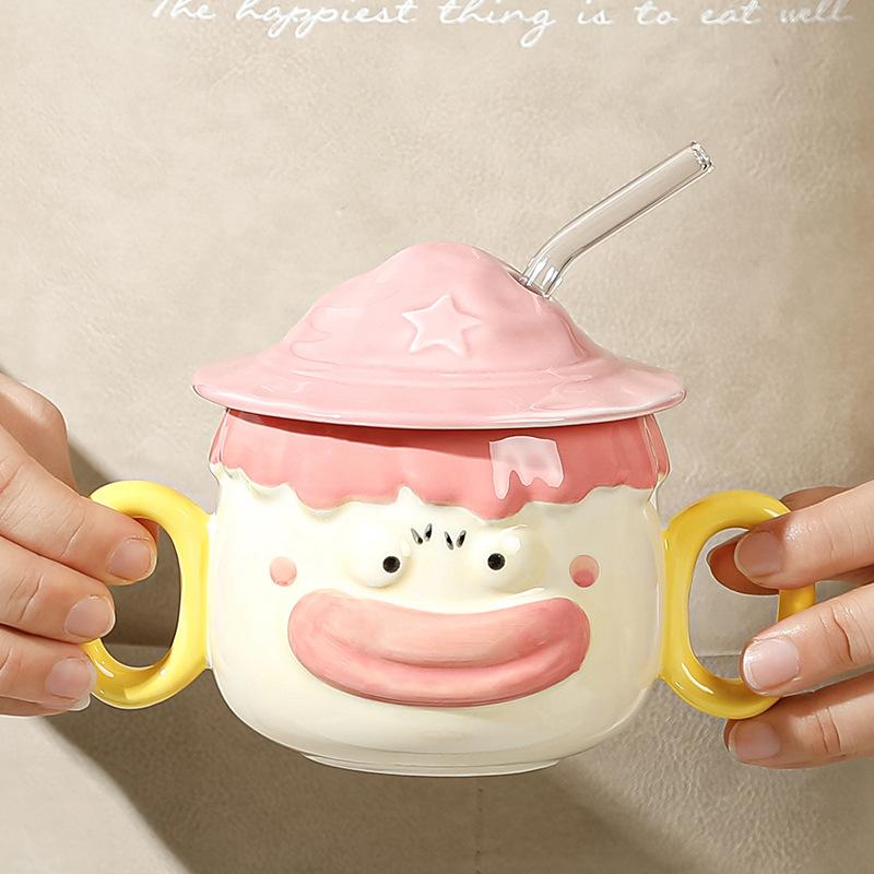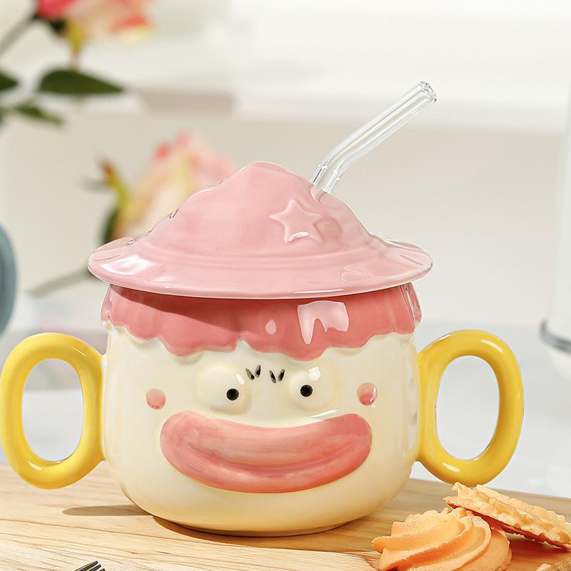Керамическая чашка с крышкой и трубочкой в виде забавного мультяшного клоуна, большая емкость, высококачественная чашка для воды, сувенир для пары