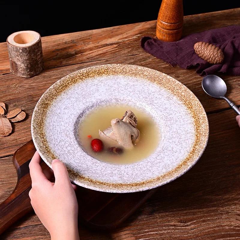 Тарелка в виде соломенной шляпы, западная тарелка, японская тарелка, ретро-керамическая посуда иностранной торговли, салат-десерт.