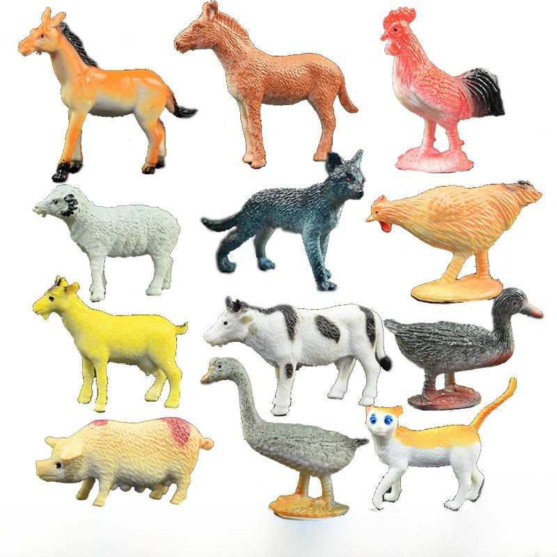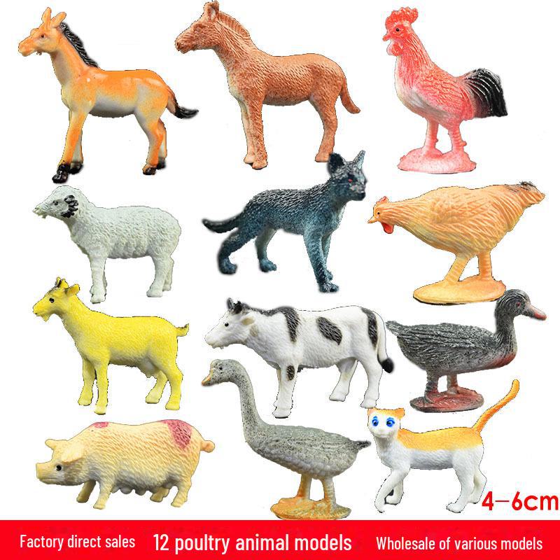 Набор игрушек для имитации домашней птицы и животных - модели курицы, утки, коровы для детей