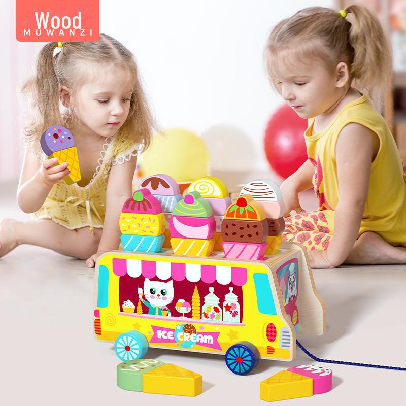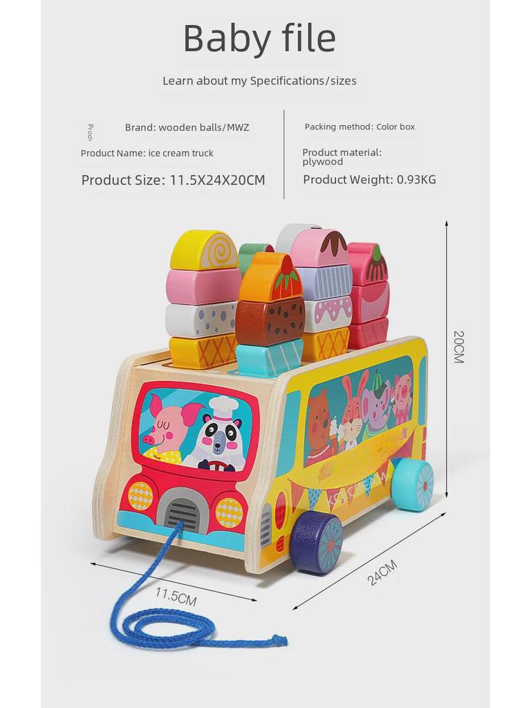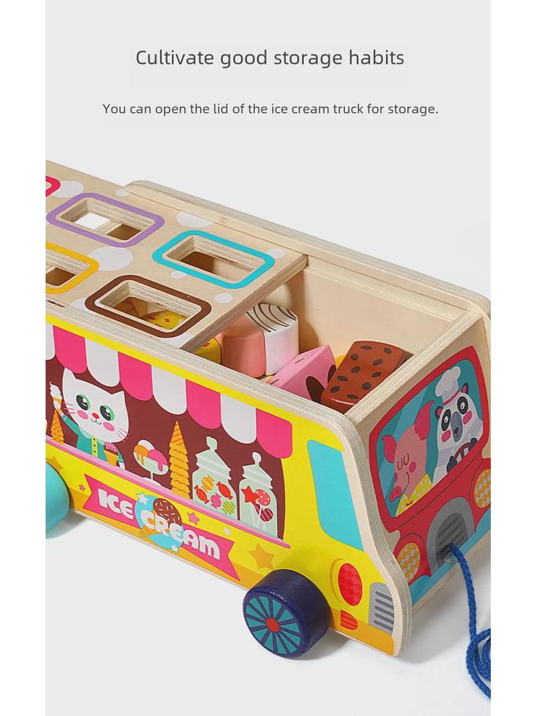 Развивающая деревянная игрушка для малышей «Грузовик с мороженым»: Игра на сопоставление форм и цветов