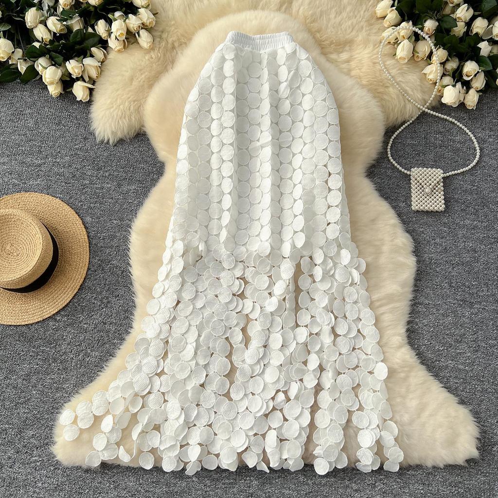 DIMANAF 2025 Новая юбка женская вязаная кружевная длинная праздничная однотонная ажурная сексуальная в горошек летняя стильная свободная базовая модель платья