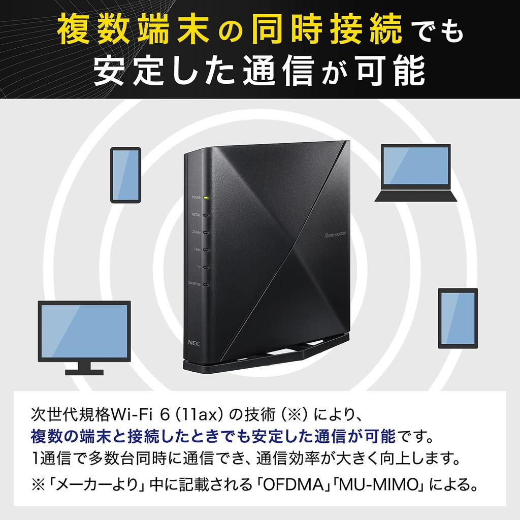 [Стабильно даже с несколькими устройствами] "OFDMA (Множественный доступ с ортогональным частотным разделением)", характерная технология следующего поколения стандарта Wi-Fi 6 (11акс), обеспечивает стабильную связь даже при подключении к нескольким устройствам.