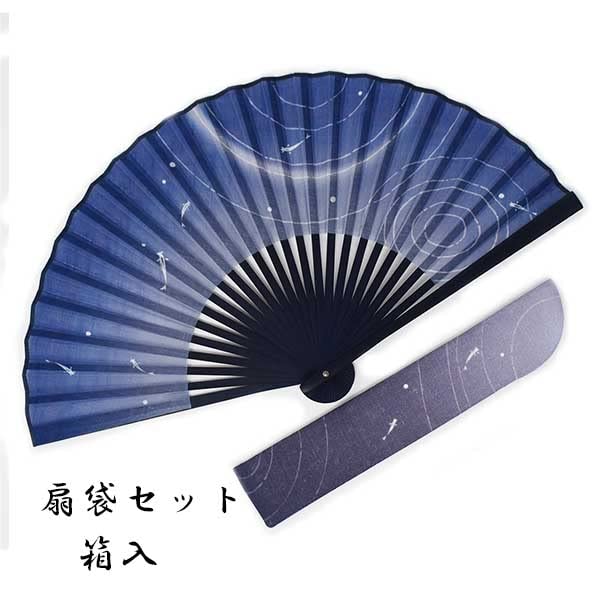Набор: Кимоно Тканевый Веер Веер Сумка Окрашенный Кость Рябь 22см [Стильный Ироха] Мужской (Темно-синий)