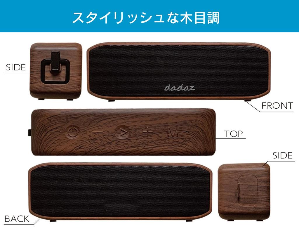 [dadaz] Стильный портативный Bluetooth-динамик с отделкой под дерево. Функция водонепроницаемости IPX7 позволяет использовать его даже во время внезапного дождя или купания на открытом воздухе.. ■Сертифицированный товар со знаком технического соответствия Номер технического соответствия: 217-210270 Диапазон частот: 2402-2480 МГц