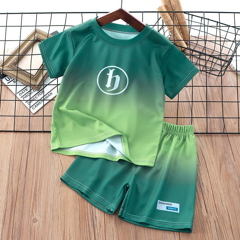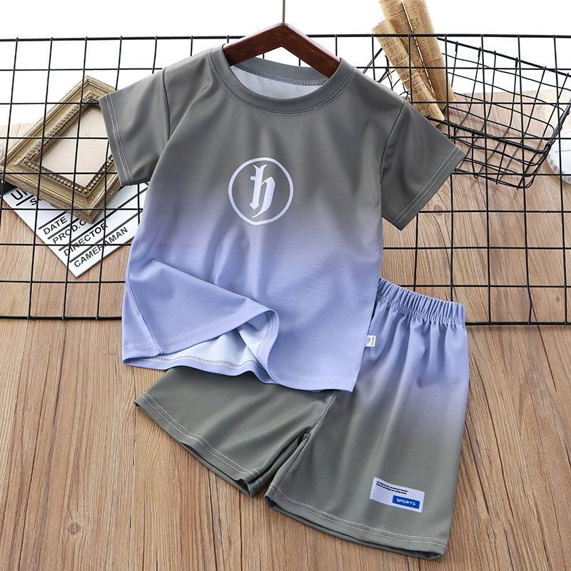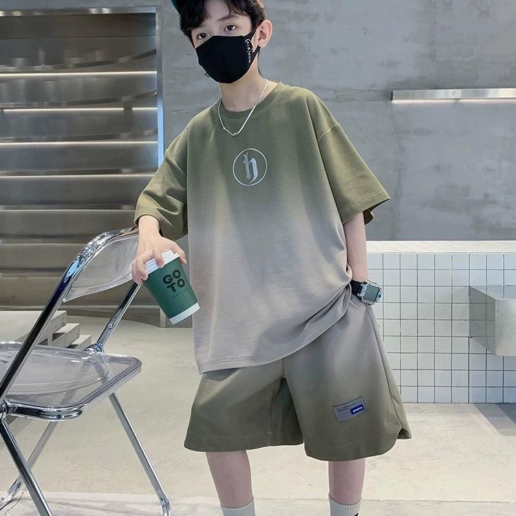Детские летние костюмы с короткими рукавами Летняя одежда для мальчиков Одежда для мальчиков больших размеров Градиентные шорты с короткими рукавами
