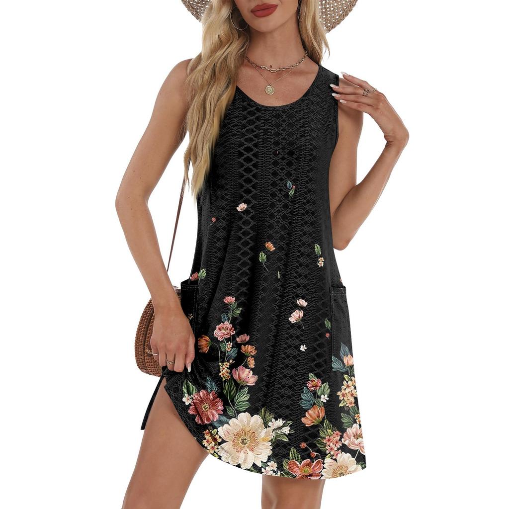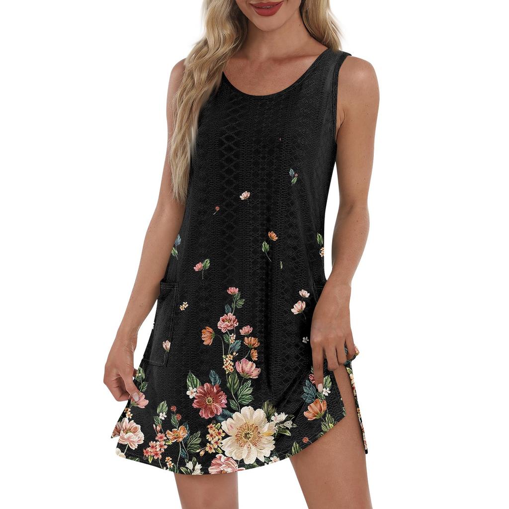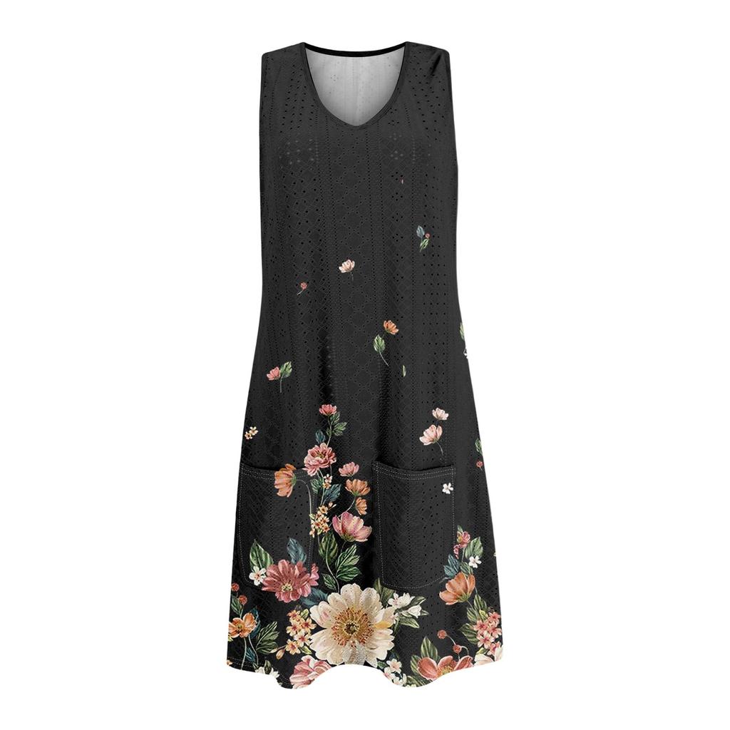Женский повседневный сарафан с карманами, летнее пляжное платье в стиле бохо, футболки, платье с V-образным вырезом, свободные платья-майки