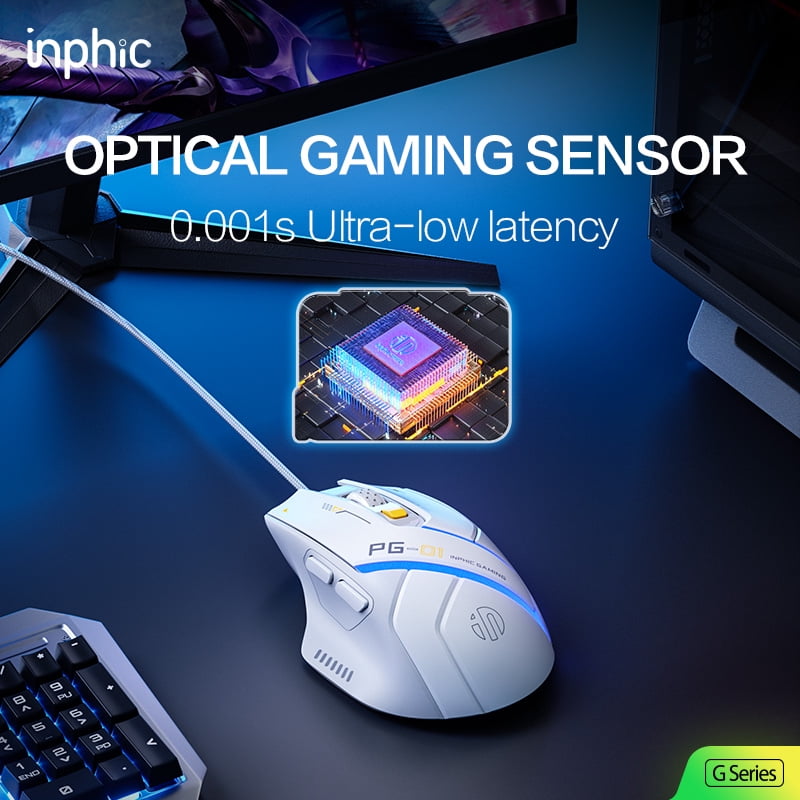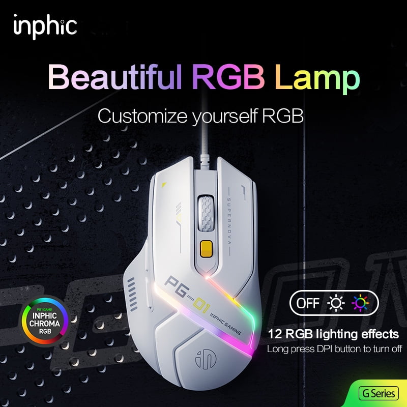 Проводная игровая мышь inphic PG1, 6 кнопок, 200–12800 точек на дюйм, 1000 Гц, RGB, легкая, эргономичная, оптическая