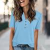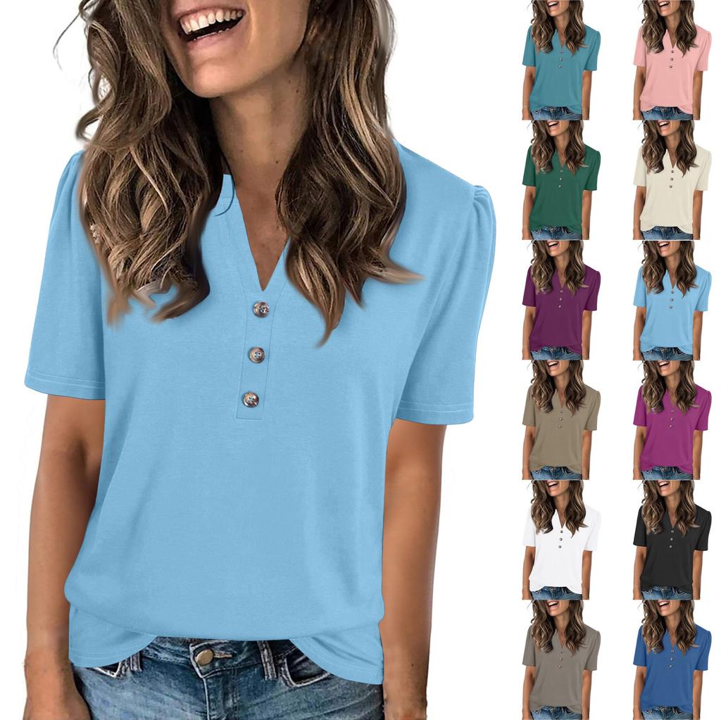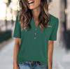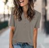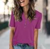 Женская модная повседневная однотонная футболка с V-образным вырезом и коротким рукавом на пуговицах — купить товар онлайн с бесплатной доставкой до всему миру!