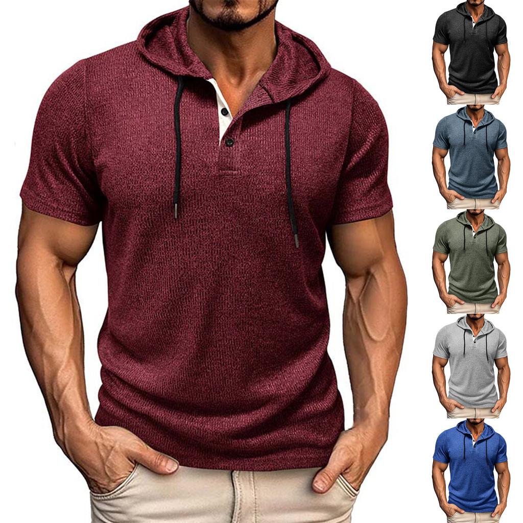 Мужская футболка уличная повседневная с коротким рукавом и капюшоном