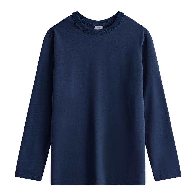 Футболка с длинным рукавом из плотного хлопка скрыто-синего цвета для мужчин и женщин, осенняя, 300 г, Синьцзян