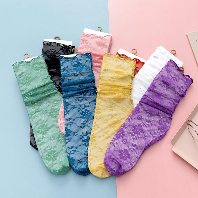 1 пара дышащих прозрачных вышитых кружевных цветочных милых ажурных модных сетчатых носков в стиле ретро, ультратонких