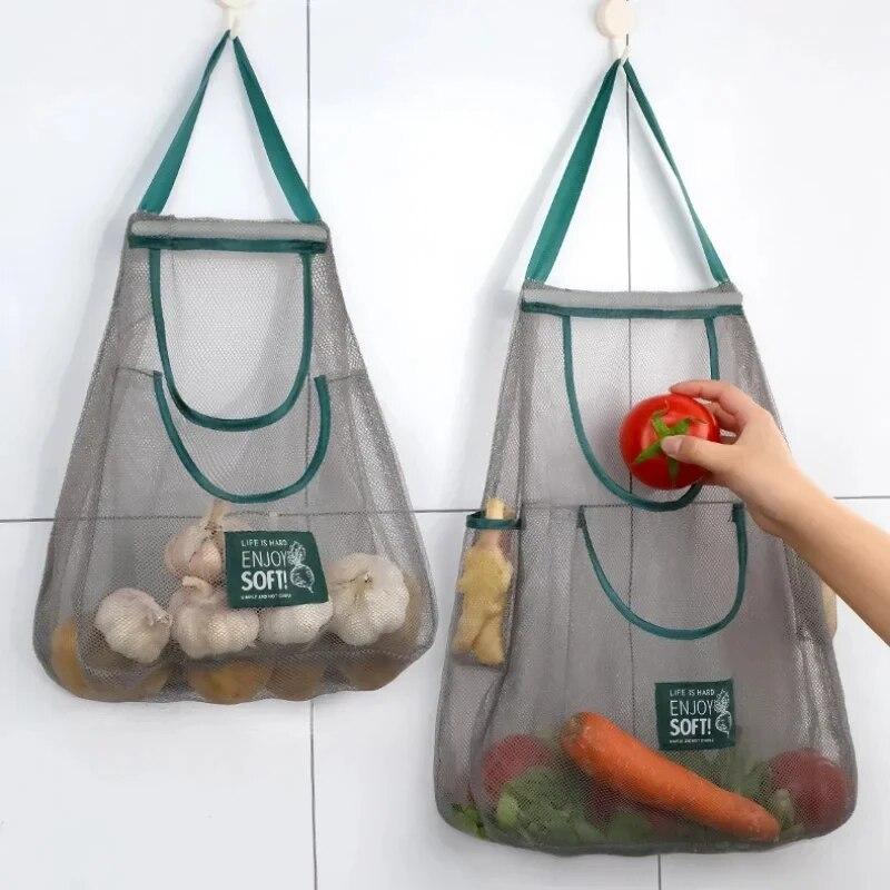 Главная Сумка для сортировки всякой всячины Подвесной мешок для фруктов и овощей Кухонная настенная сетчатая сумка для чеснока Сумка для хранения лука и имбиря