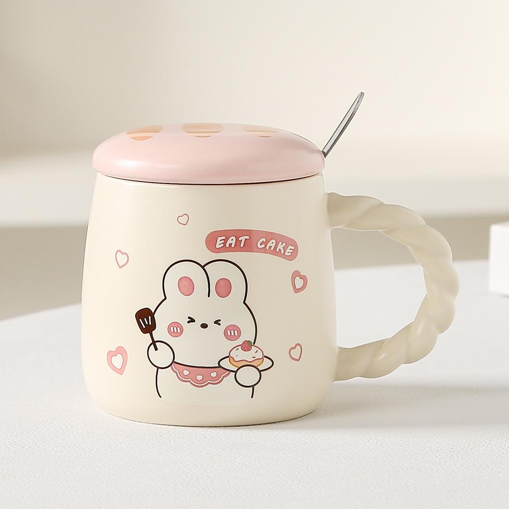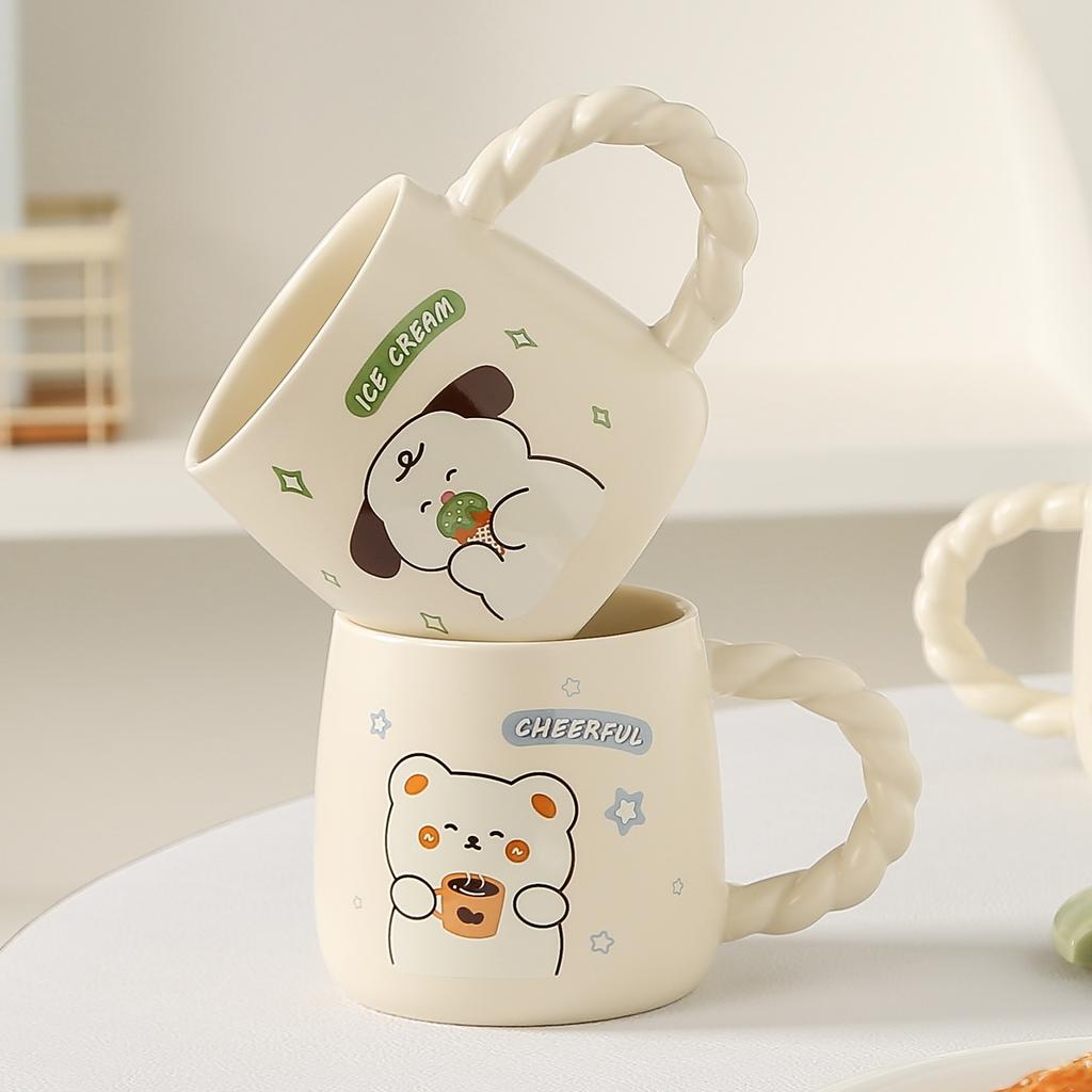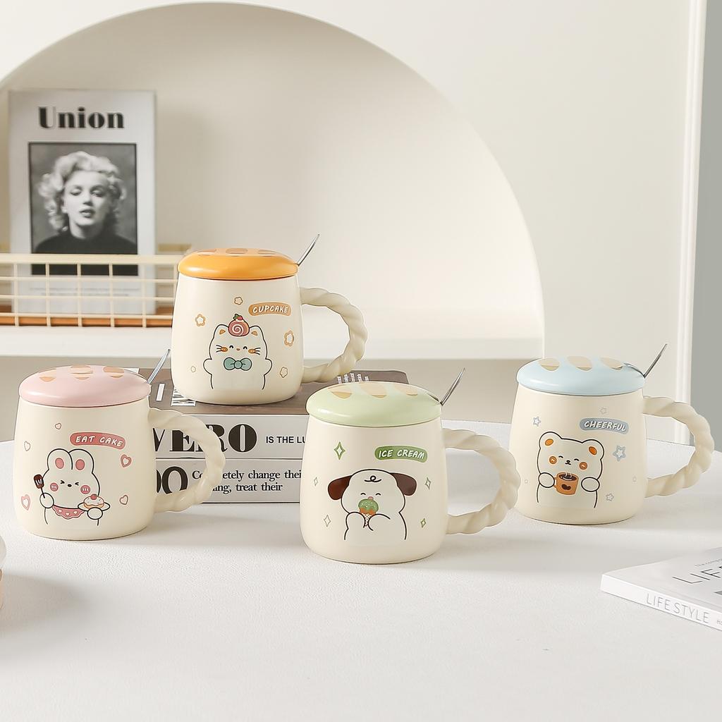 Кофейная чашка с ложкой, керамическая, симпатичная ветряная чашка с крышкой, высококачественный набор, детская керамическая чашка для воды