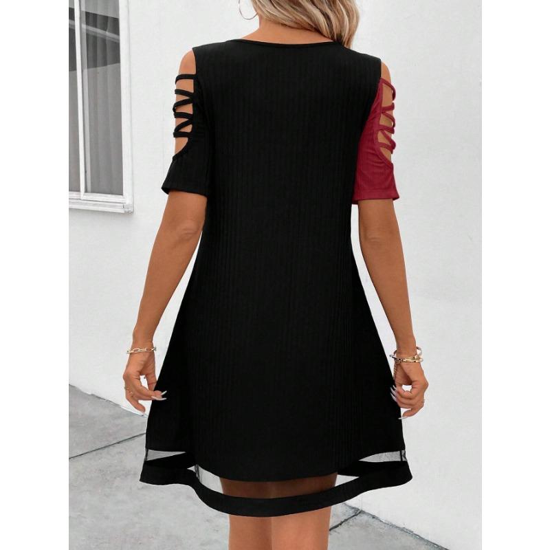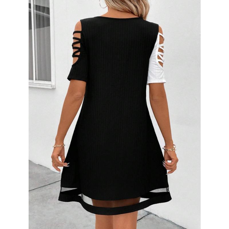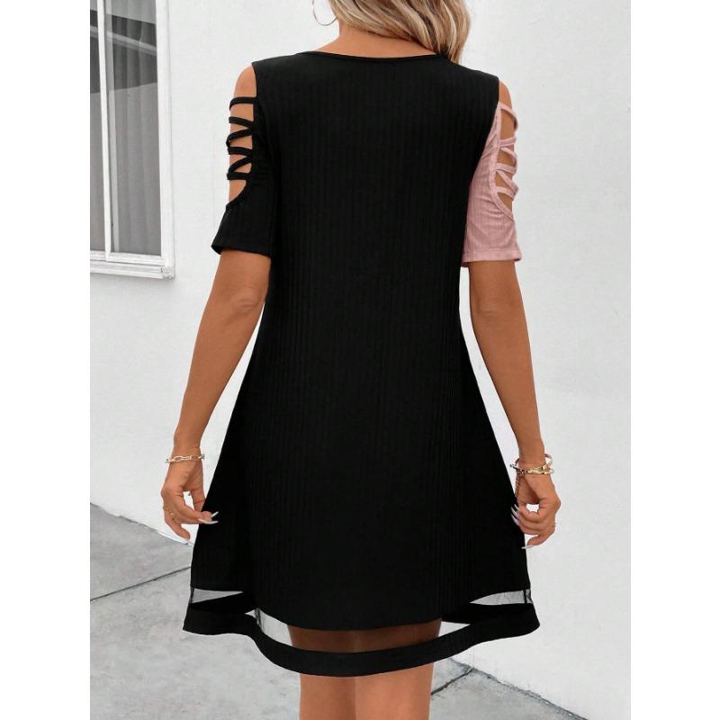 YYFS Женская мода лето весна цвет блок принт короткий рукав U-образный вырез свободная талия повседневные платья